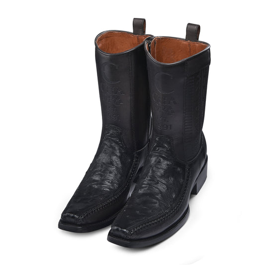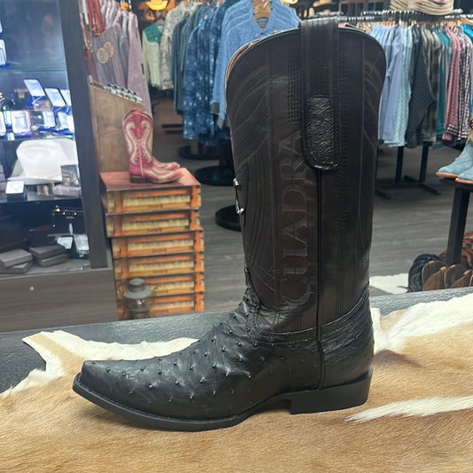 Cuadra Black Ostrich Pointed Toe Boot